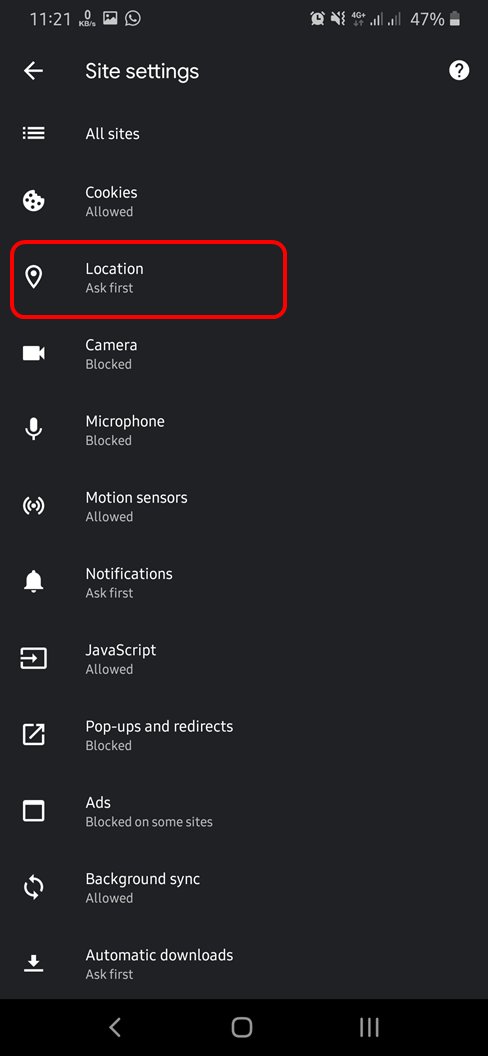 - Pilih "Location Access" kemudian ganti dari BLOCK menjadi ALLOW.