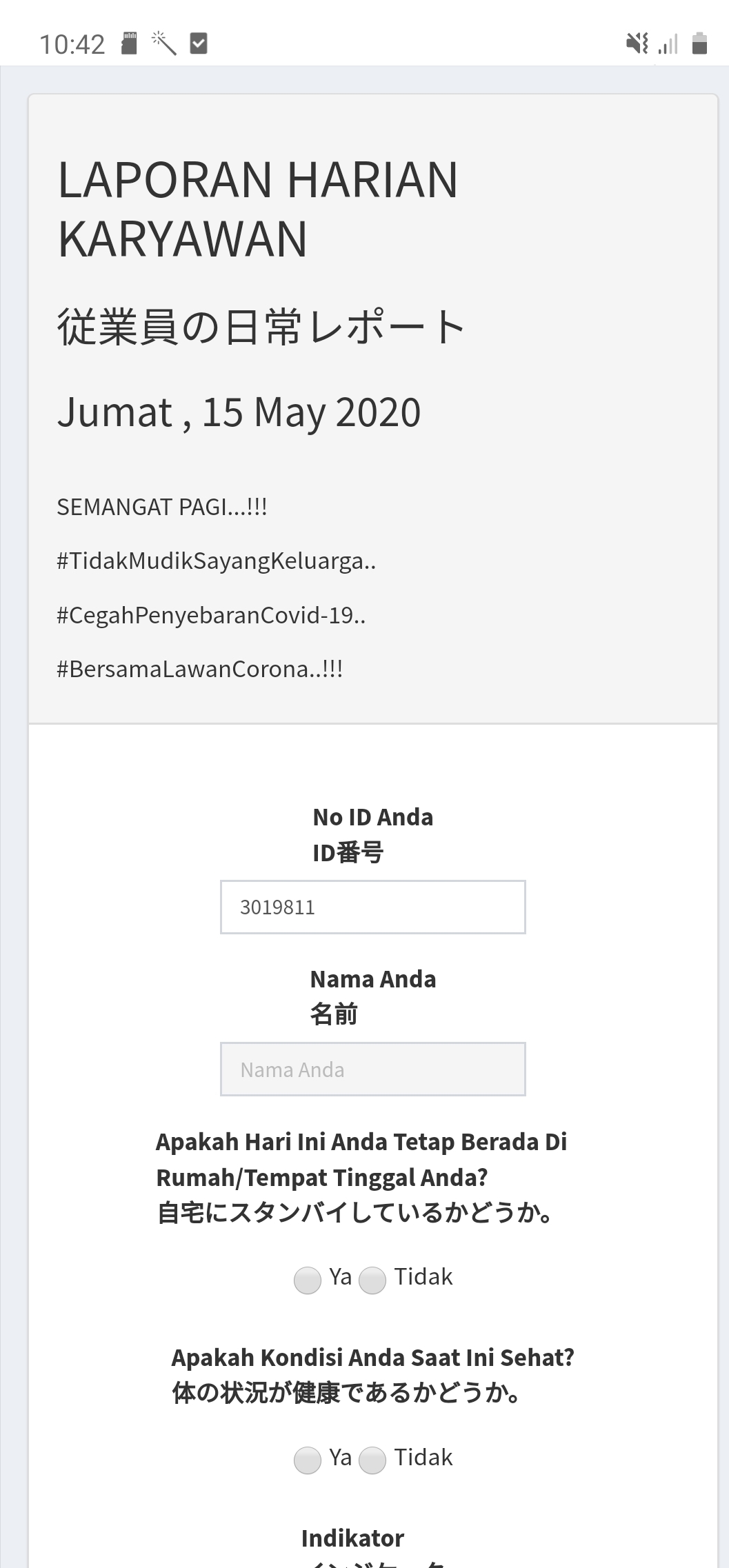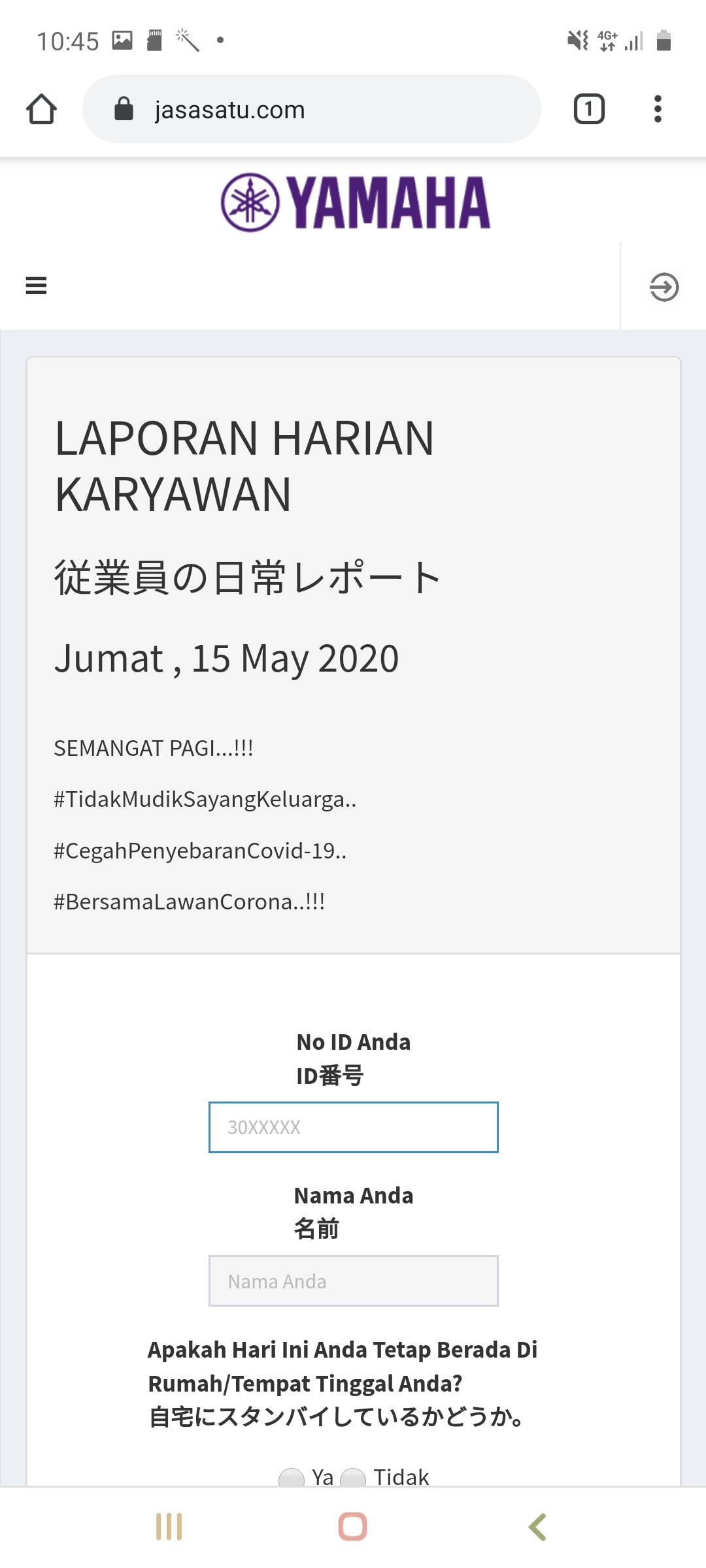 Jika Nama Anda tidak muncul setelah menginputkan No ID, maka refresh kembali halaman web https://www.absensi.koperasimajubersama.com/ dan input ulang No ID Anda