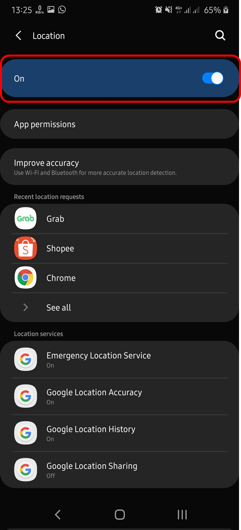 - Selanjutnya Setting Location Menjadi ON.